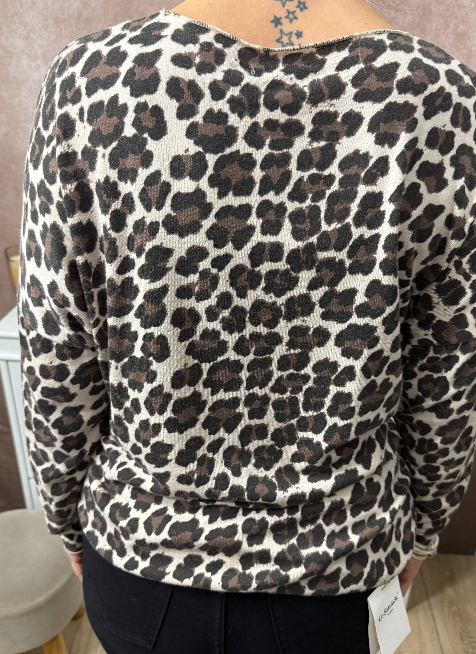 pull col fin femme, pull léopard femme, pull doux femme, pull taille unique femme, pull chic décontracté, pull tendance, pull léger femme