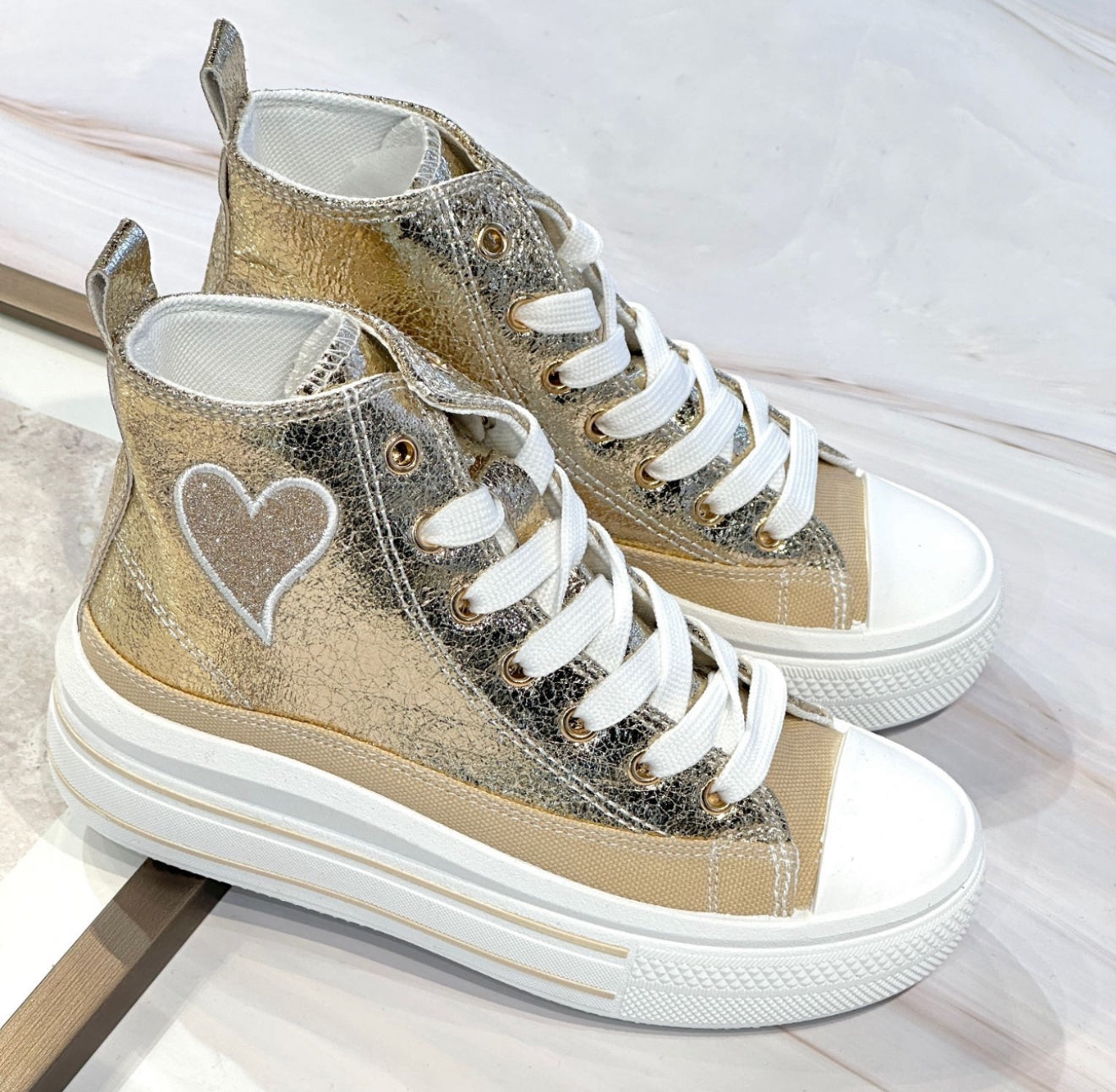 Baskets Fille Dorées avec Cœur – Brillance, Douceur et Style au Rendez-vous
