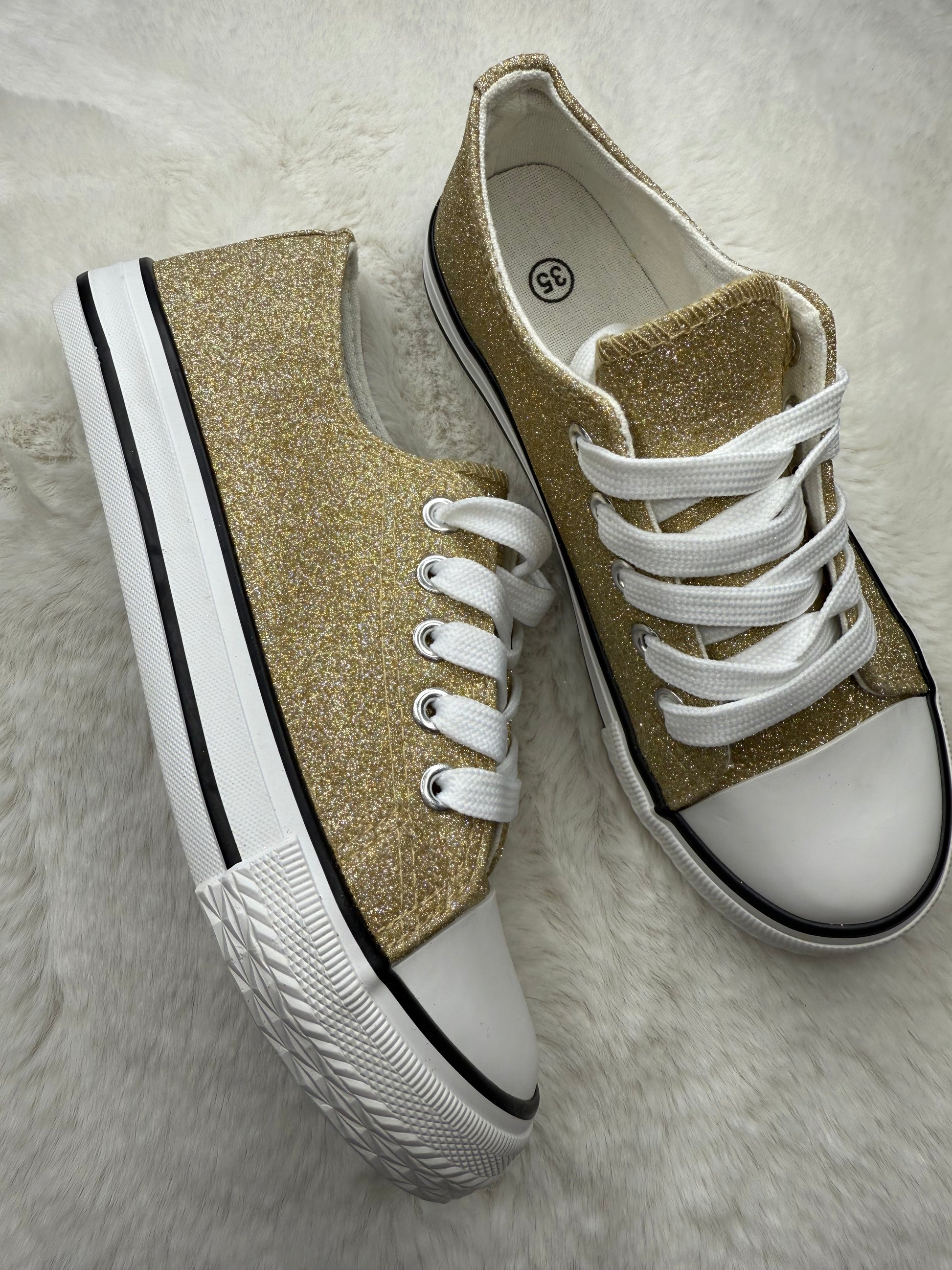 Baskets Fille Pailletées Dorées – Brillance, Style et Confort Réunis