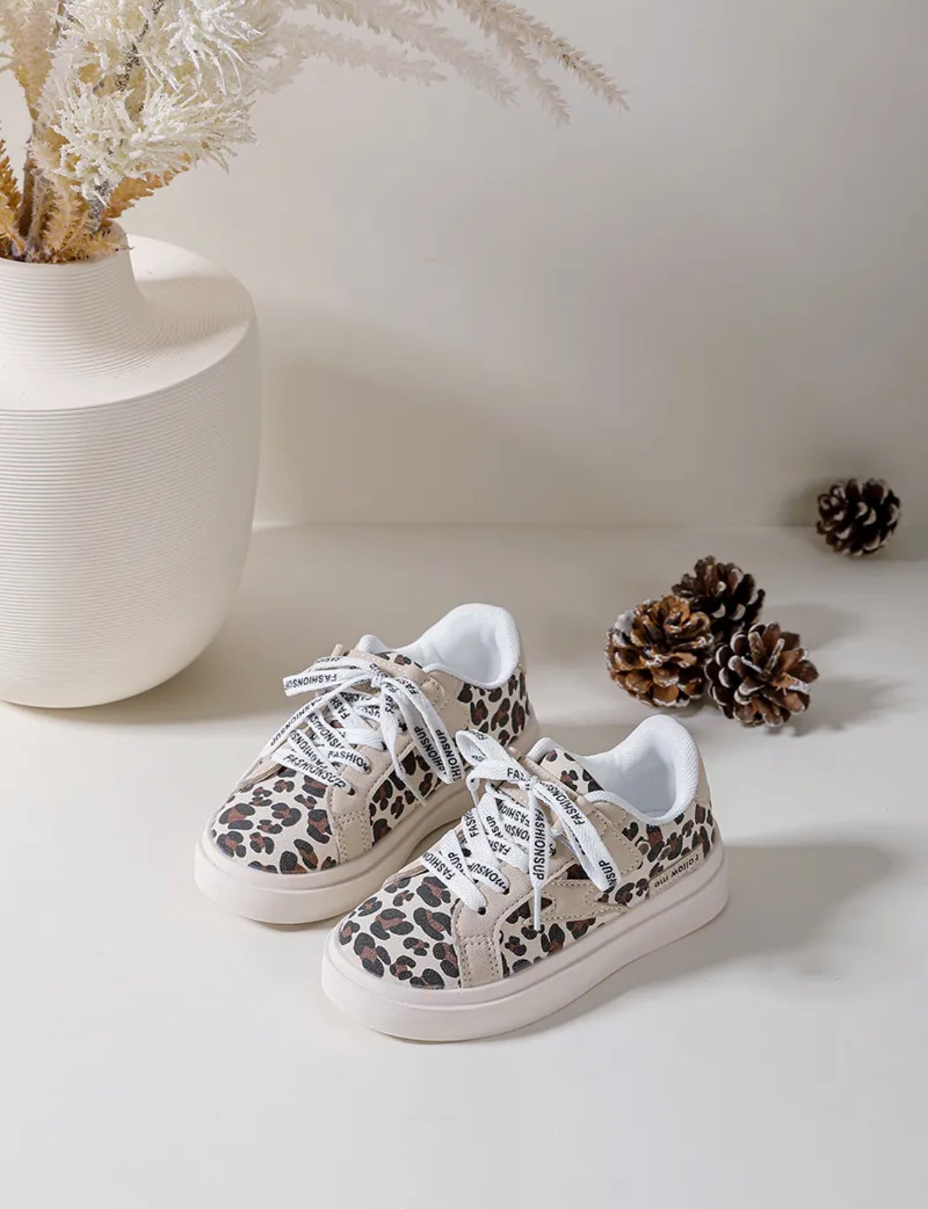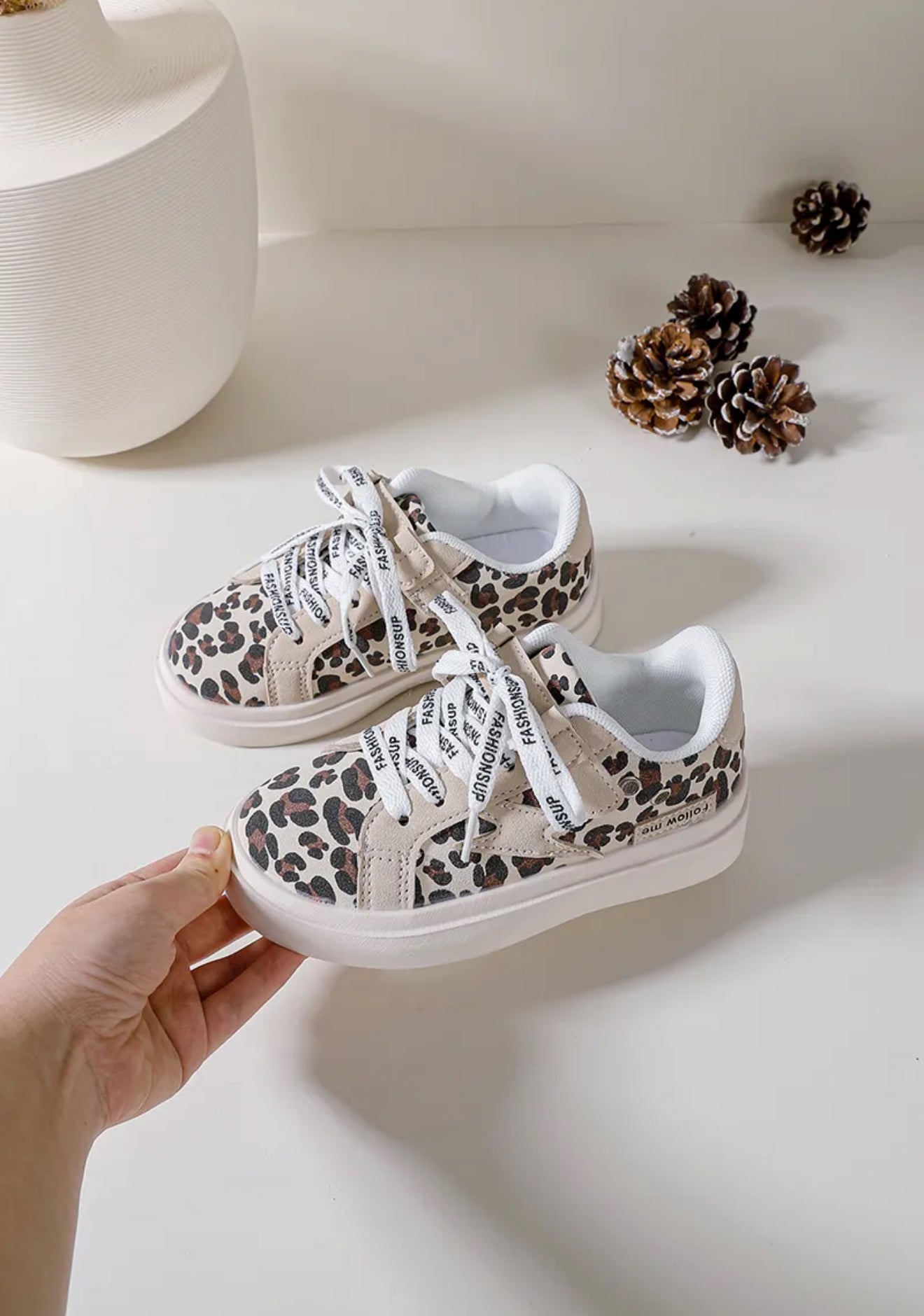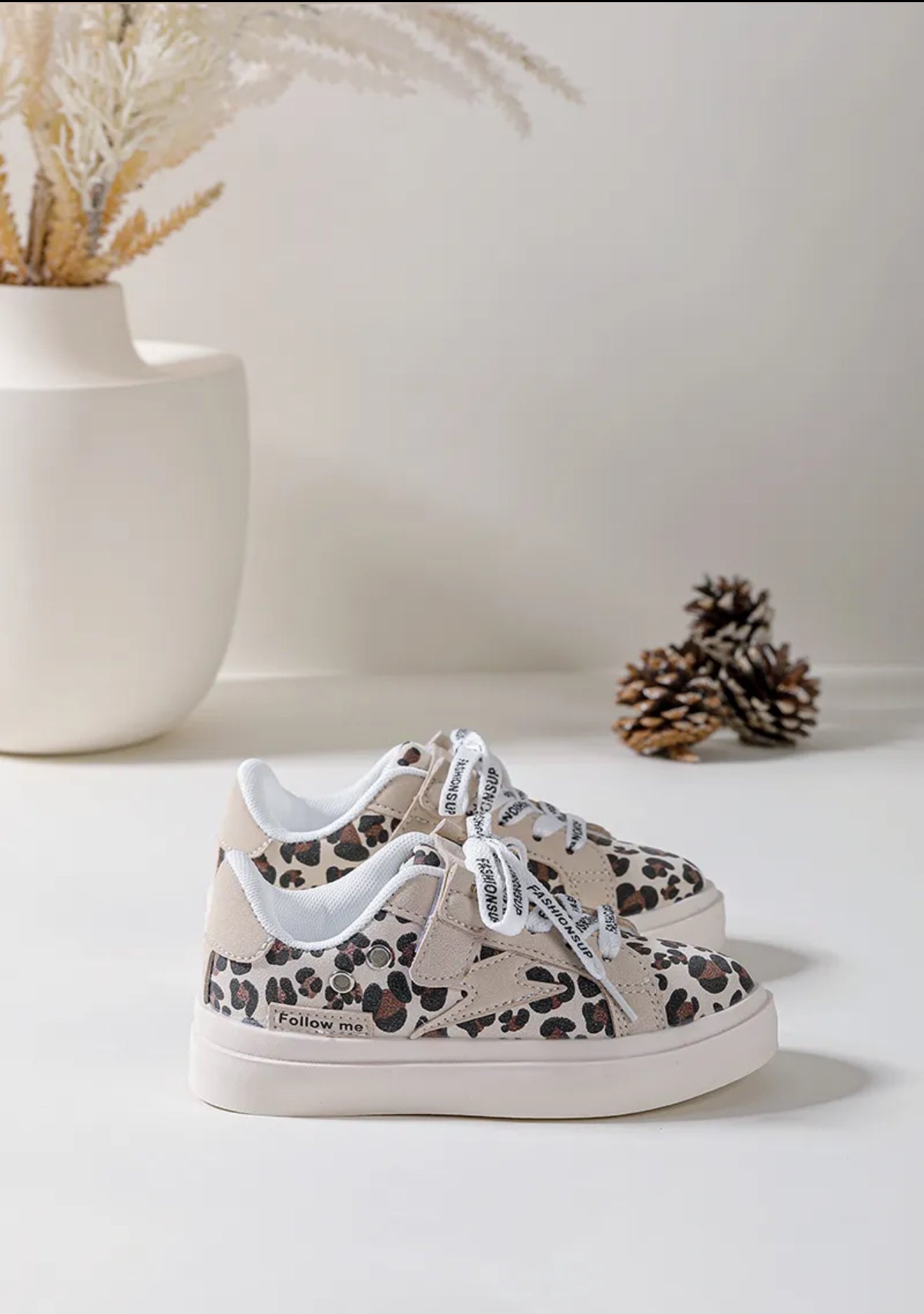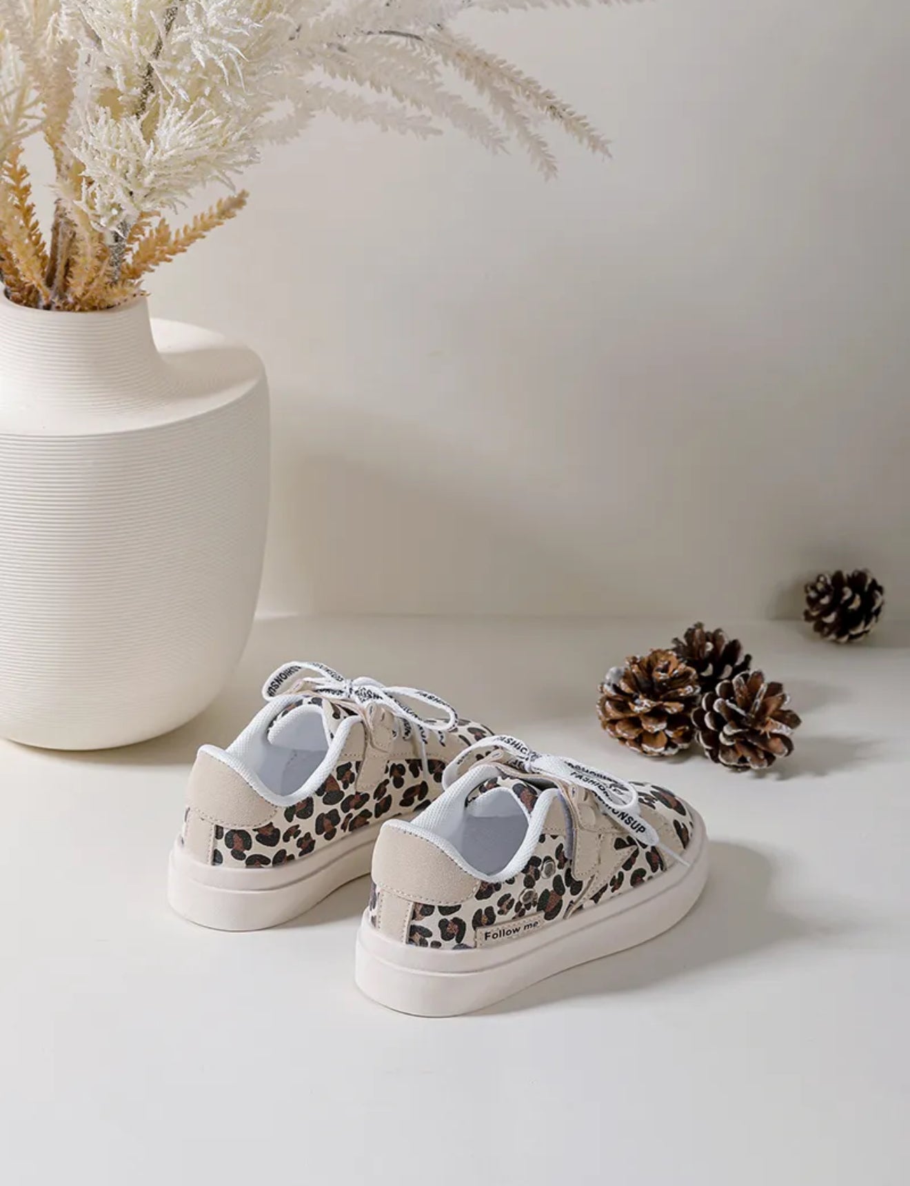 Des baskets tendance et pratiques, parfaites pour compléter toutes les tenues. Elles sont décorées d’un imprimé léopard moderne et d’une inscription « Follow Me » sur le côté, pour une touche originale. La fermeture combinée lacets et scratch assure maintien et confort tout au long de la journée.