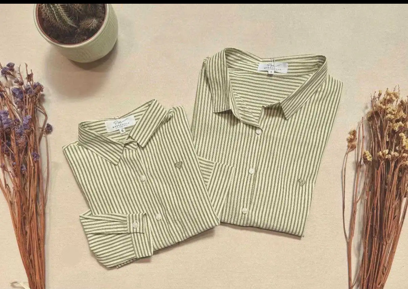 Apportez fraîcheur et élégance à vos looks mère-fille avec cette chemise rayée verte, déclinée en version adulte et enfant. Confectionnée en 100 % coton, elle est douce, légère et agréable à porter. Le petit cœur délicat apporte une touche féminine et subtile.