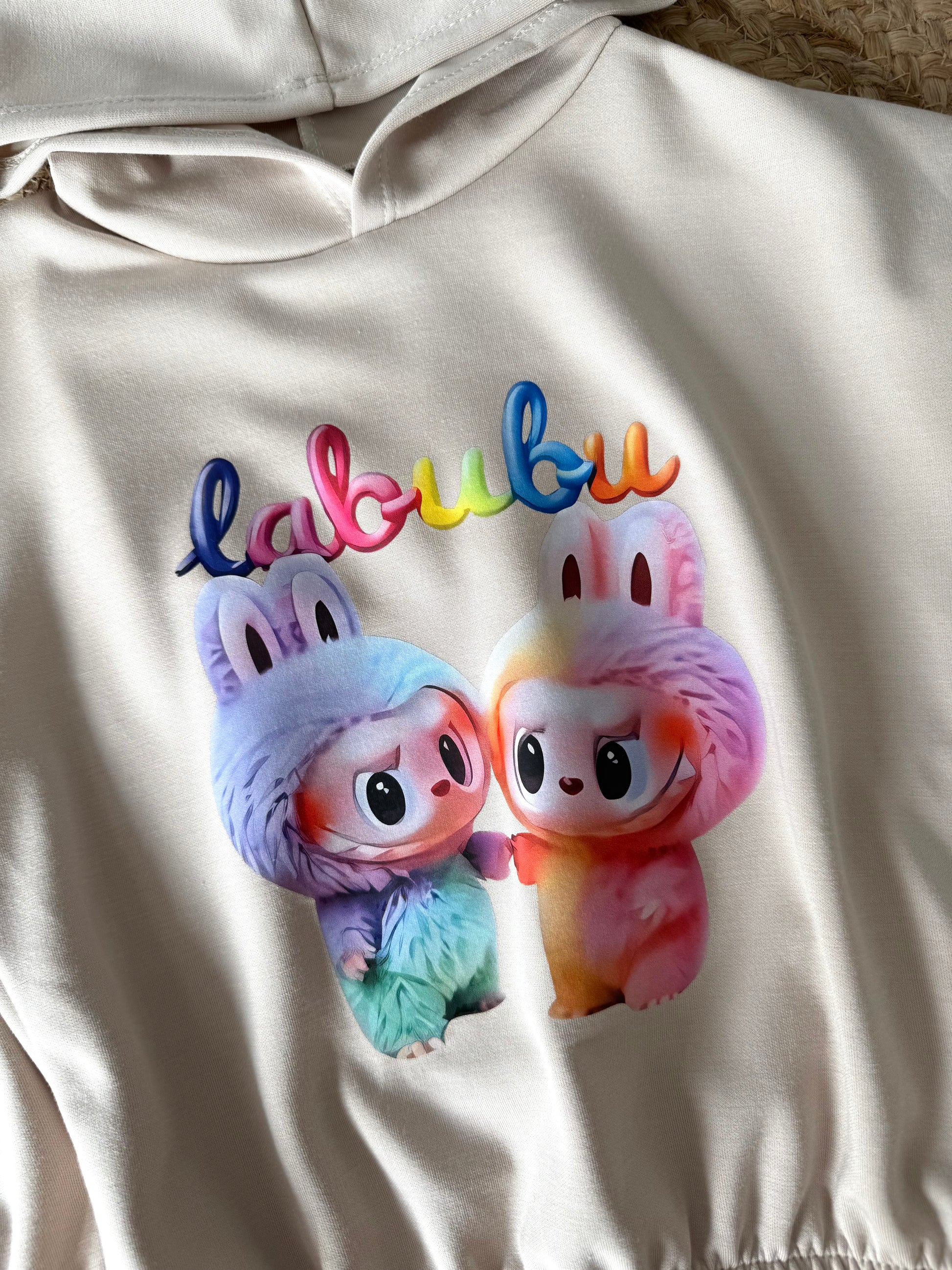 Détails : Sweat à capuche confortable et doux, orné du joli dessin Labubu sur le devant pour une touche ludique et originale. Idéal pour un look décontracté et tendance au quotidien.